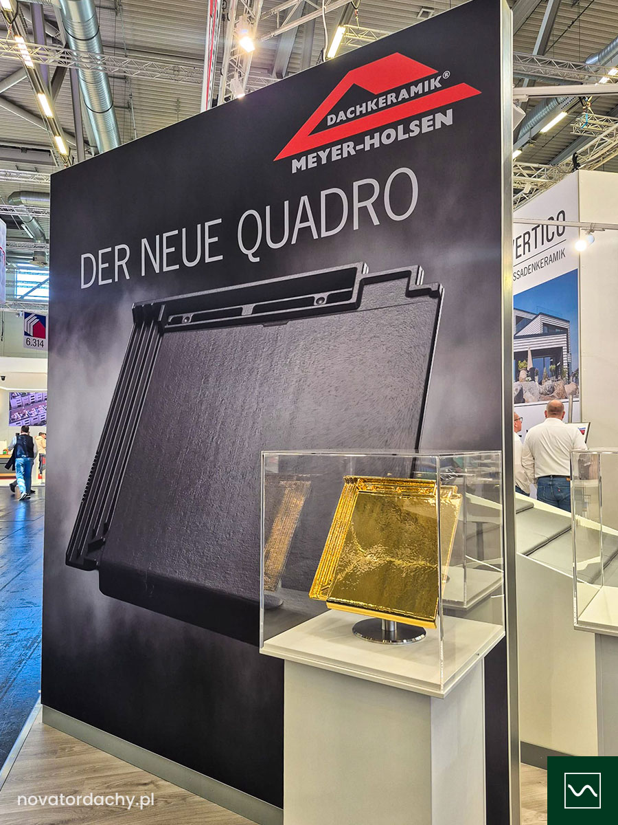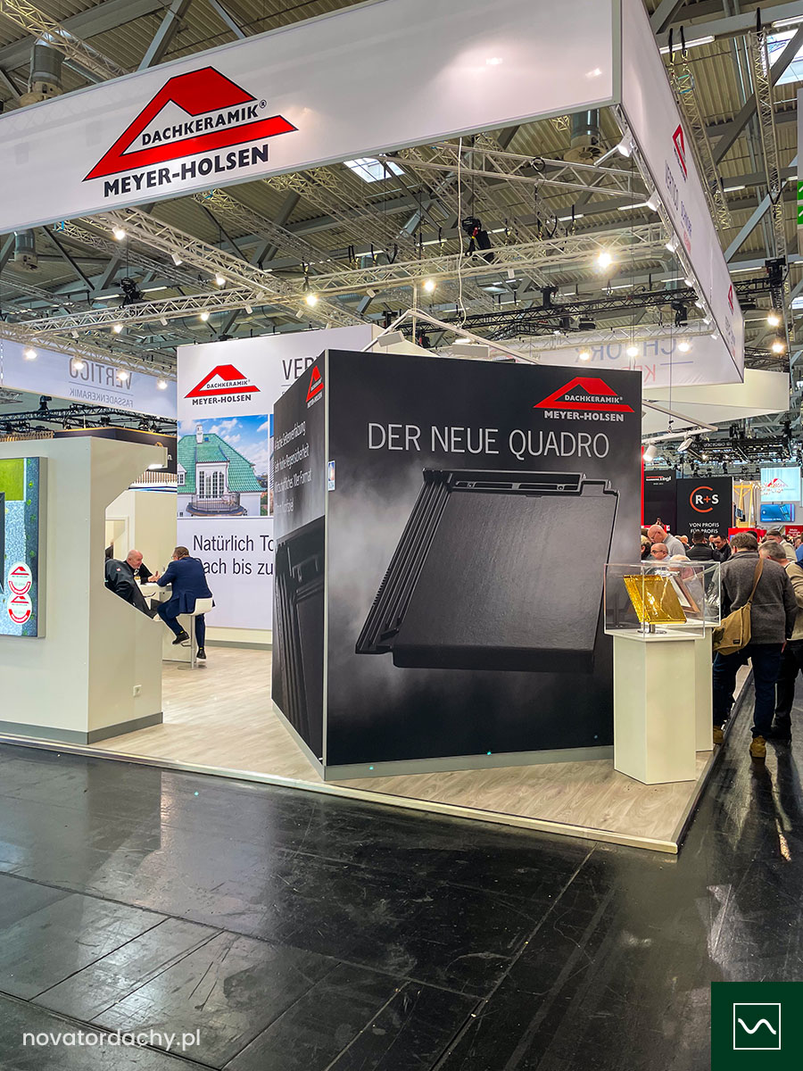 Na stoisku firmy Meyer Holsen prezentowana była premierowo nowa dachówka ceramiczna płaska Quadro, która wzbudziła duże zainteresowanie wśród architektów, dekarzy i firm budowlanych. To dachówka ceramiczna klasy premium, zaprojektowana z myślą o nowoczesnej architekturze oraz dachach o niskim kącie nachylenia. Produkt wyróżnia się wysoką szczelnością, odpornością na trudne warunki atmosferyczne oraz minimalistycznym designem.