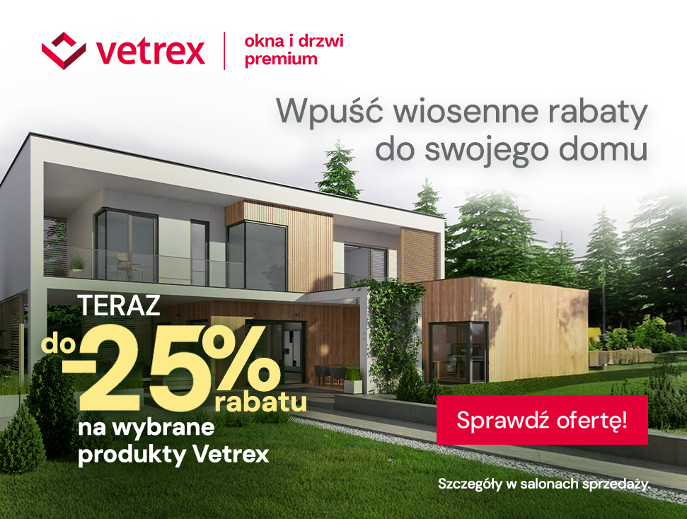 Planujesz budowę domu lub wymianę stolarki? Wiosna to idealny moment na realizację tych planów. Właśnie ruszyła wyjątkowa oferta promocyjna marki Vetrex, dzięki której wybrane produkty premium kupisz nawet o 25% taniej.